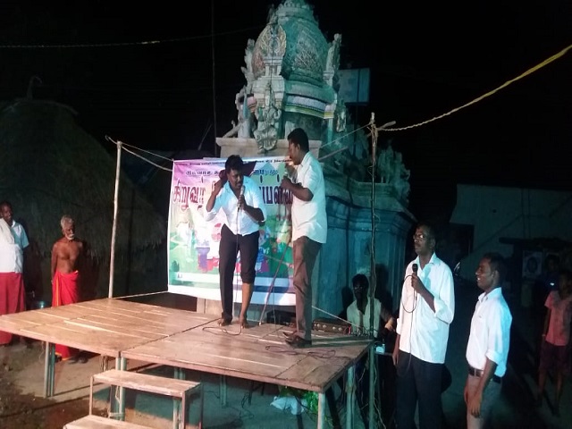 We are attaching two photos where I (Pastor Tamil Maran) am explaining the gospel of Matthew. She is guava fruit vendor on the high road. She accepted Jesus Christ as Saviour. I prayed for her and her family for welfare her family affairs. She was suffering from nightmares and fear. Once Jesus Christ name uttered through prayer, she was delivered from anxiety, from fear. She is happy now. Her name is Mrs. Annakili having two sons aged 14 years and 7 years.
