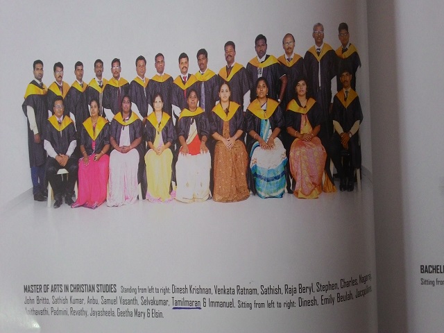 August 6, 2017 - Picture is Tamil Maran top row 2nd from the right graduating with pastor certificate.